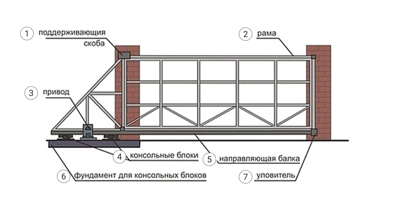 Консольные – комплектация, имеющая верхнюю балку, которая нужна для движения полотна.